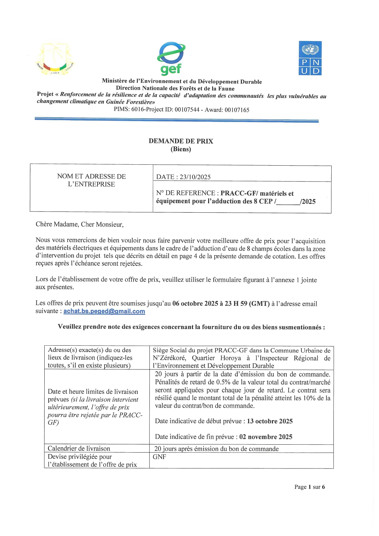 Appels d'offres Demande de devis pour la fourniture de matériels et équipement pour l’adduction des 8 CEP / /2025 Par Sékou Mohamed SAVANE - 25 septembre 2025 0 21 FacebookTwitterPinterestWhatsApp Télécharger l’avis complet en PDF