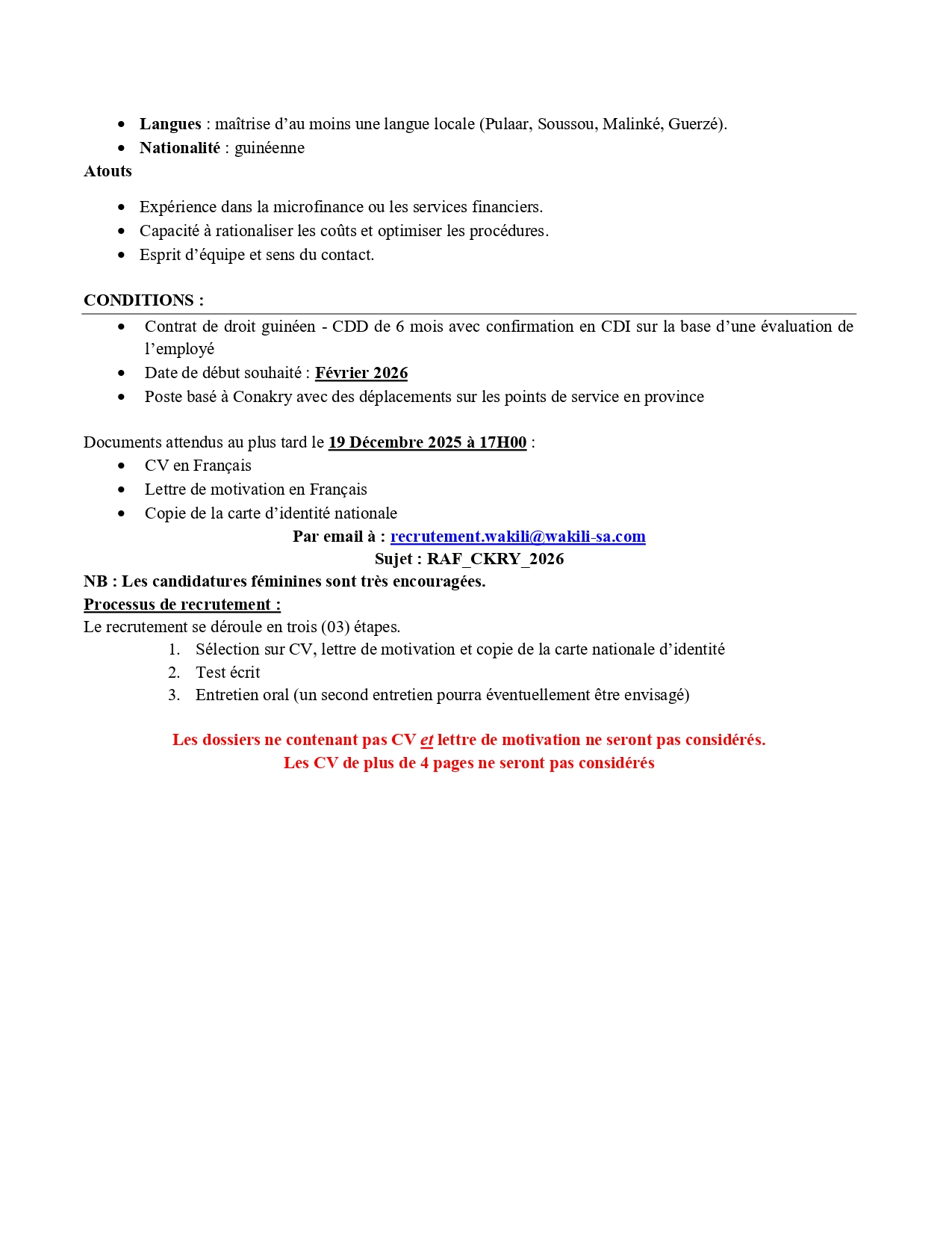 Opportunités d'emplois Avis de recrutement d’un Responsable Administratif et Financier Basé à Conakry, Guinée Par Sékou Mohamed SAVANE - 3 décembre 2025 0 10 FacebookTwitterPinterestWhatsApp