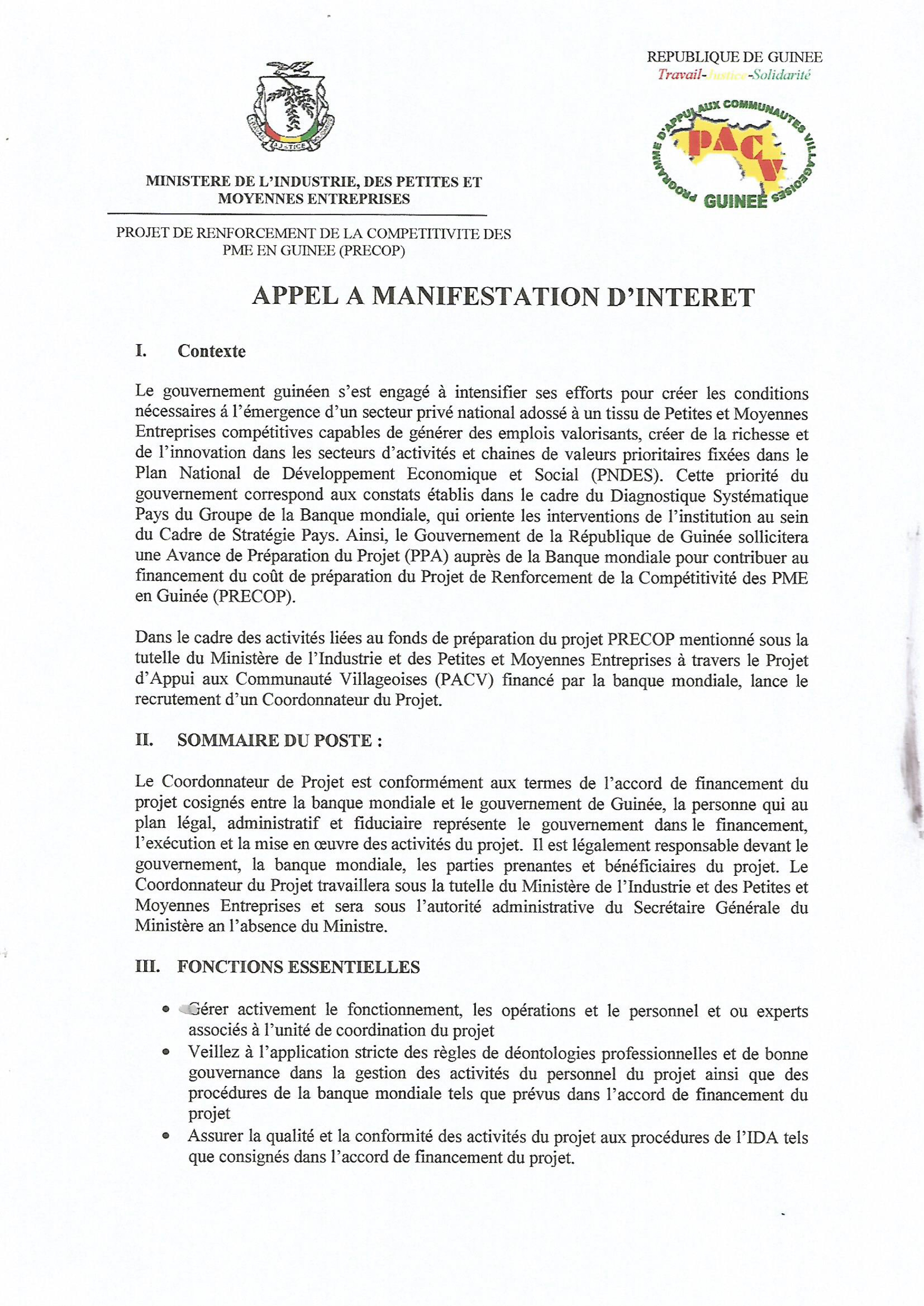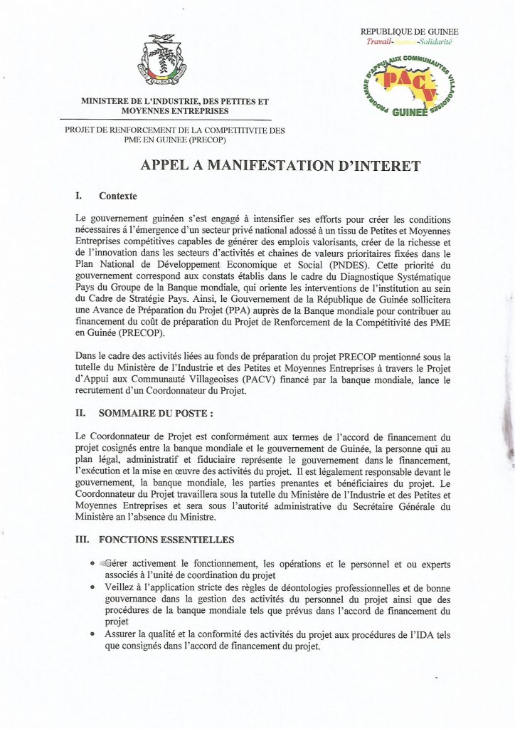 Appels d'offres APPEL A MANIFESTATION D’INTERET Par Sékou Mohamed SAVANE - 8 octobre 2018 0 903 FacebookTwitterPinterestWhatsApp